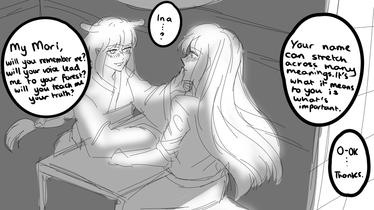 #inamori #callillust #inart - "My Mori, will you remember me? Will your voice lead me to your forest? Will you teach me your truth?" Ina teaches Calli her name's meaning.