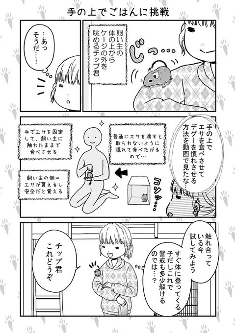 【デグーのチップ君】手の上でご飯に挑戦 チップ君の力が凄すぎて、ペレットを指で挟み込み切れず綺麗にはぎ取られた… #デグー #デグーのチップ君 #漫画 #デグーのいる暮らし #漫画が読めるハッシュタグ #デグー好きと繋がりたい