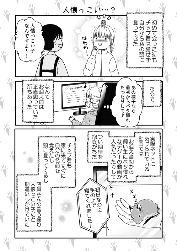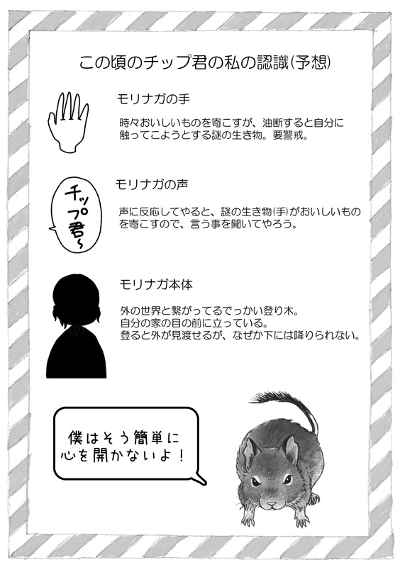 【デグーのチップ君】人懐っこい…? デグーを飼う時ベタ慣れを期待しちゃうけど、「懐かない可能性もある」「思っていたのと違うのは当たり前」というのはしっかり頭に入れておくべきなのを実感した🐁 #デグー #デグーのチップ君 #漫画 #デグーのいる暮らし #漫画が読めるハッシュタグ