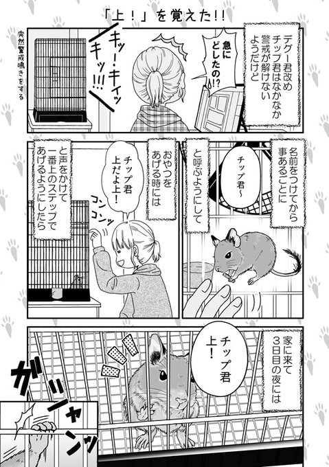 【デグーのチップ君】「上」を覚えた! チップ君が一番初めに覚えたのは「上」でした✨ その後やらなくなったら忘れちゃったみたいなんだけど、最近また復活させようと練習しています。 #デグー #デグーのチップ君 #漫画 #デグーのいる暮らし #漫画が読めるハッシュタグ