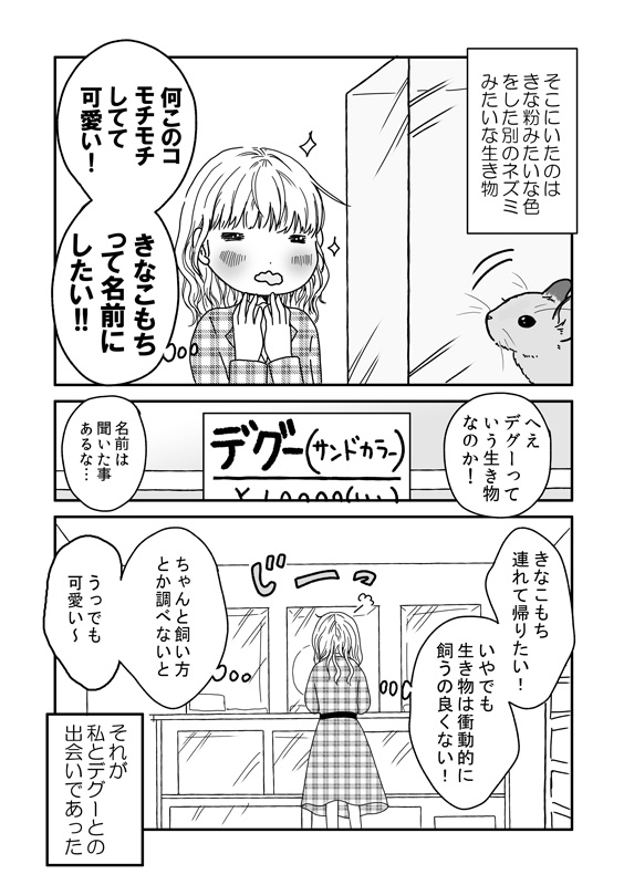 「デグーのチップ君」 デグー君のお迎え1 デグー君をお迎えするまでの一週間の話 #デグー #デグーのチップ君 #漫画 #漫画が読めるハッシュタグ #デグーのいる生活 #デグーのいる暮らし #オリジナル漫画
