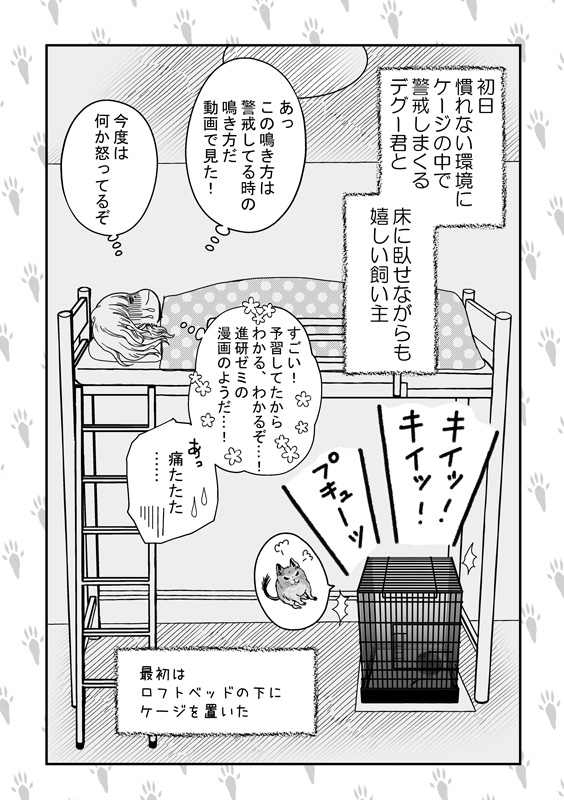 「デグーのチップ君」 デグー君のお迎え7 デグー君の事に全神経を集中させすぎた… そして予習が役立った! #デグー #デグーのチップ君 #漫画 #漫画が読めるハッシュタグ #デグーのいる生活 #デグーのいる暮らし #オリジナル漫画