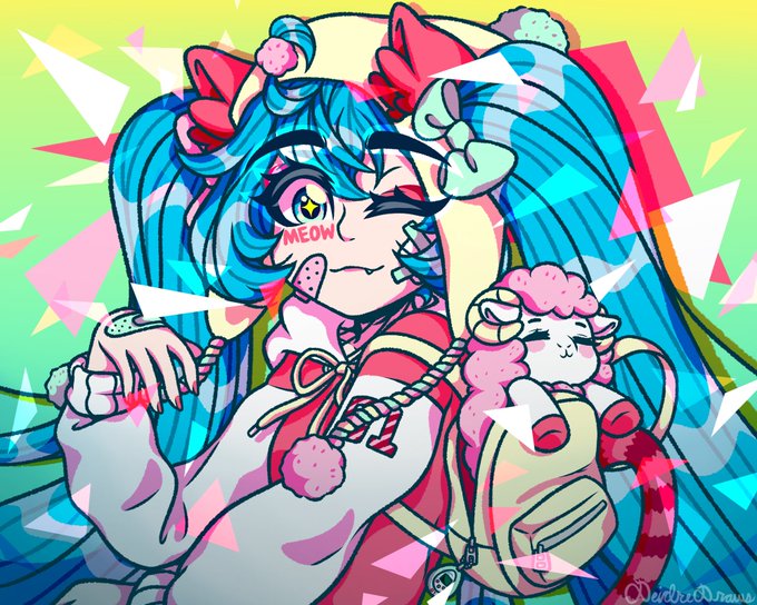 🐾🎀For Cat Day (aka Twosday) that passed #prsk_FA #hatsunemiku #初音ミク #vocaloidfanart #digitalart