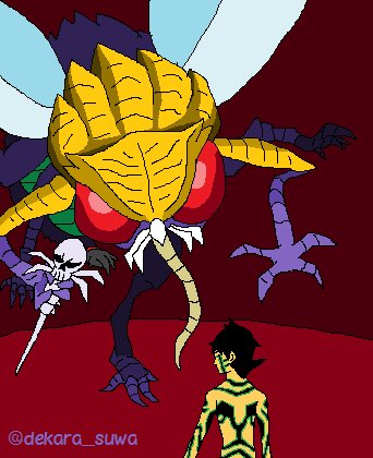 大遅刻ですが大好きな悪魔なので参加します!!! 真3で初めて見かけたときは圧巻の演出でのハエ形態での登場と凶悪な固有技 仲魔になった時の親しみやすい口調で惚れました/// #女神転生版深夜のお絵描き60分1本勝負