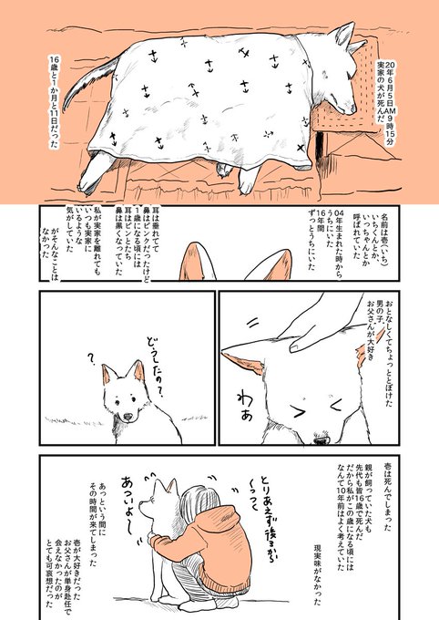 pixiv.net/artworks/10698… コミティア144新刊のサンプルです。スペースL07a。実家の犬を亡くした時のエッセイ漫画です。webに掲載していたもの+描きおろし4P。A5,60P,800円。(1/3) #COMITIA144 #COMITIA #コミティア