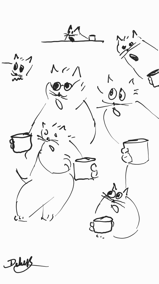 Just fired up a fresh pot of coffee. Get your cups out. I got the coffee... who's got the cookies? #doodle #coffeecats ☕