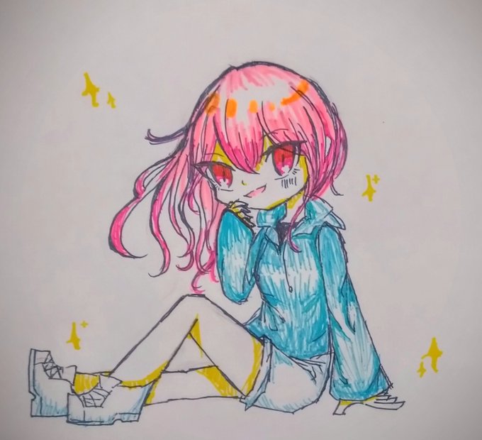 小悪魔っぽい子を描きたかった… 画材:ボールペン、蛍光ペン #イラスト練習中 #イラスト好きな人と繋がりたい #オリジナル