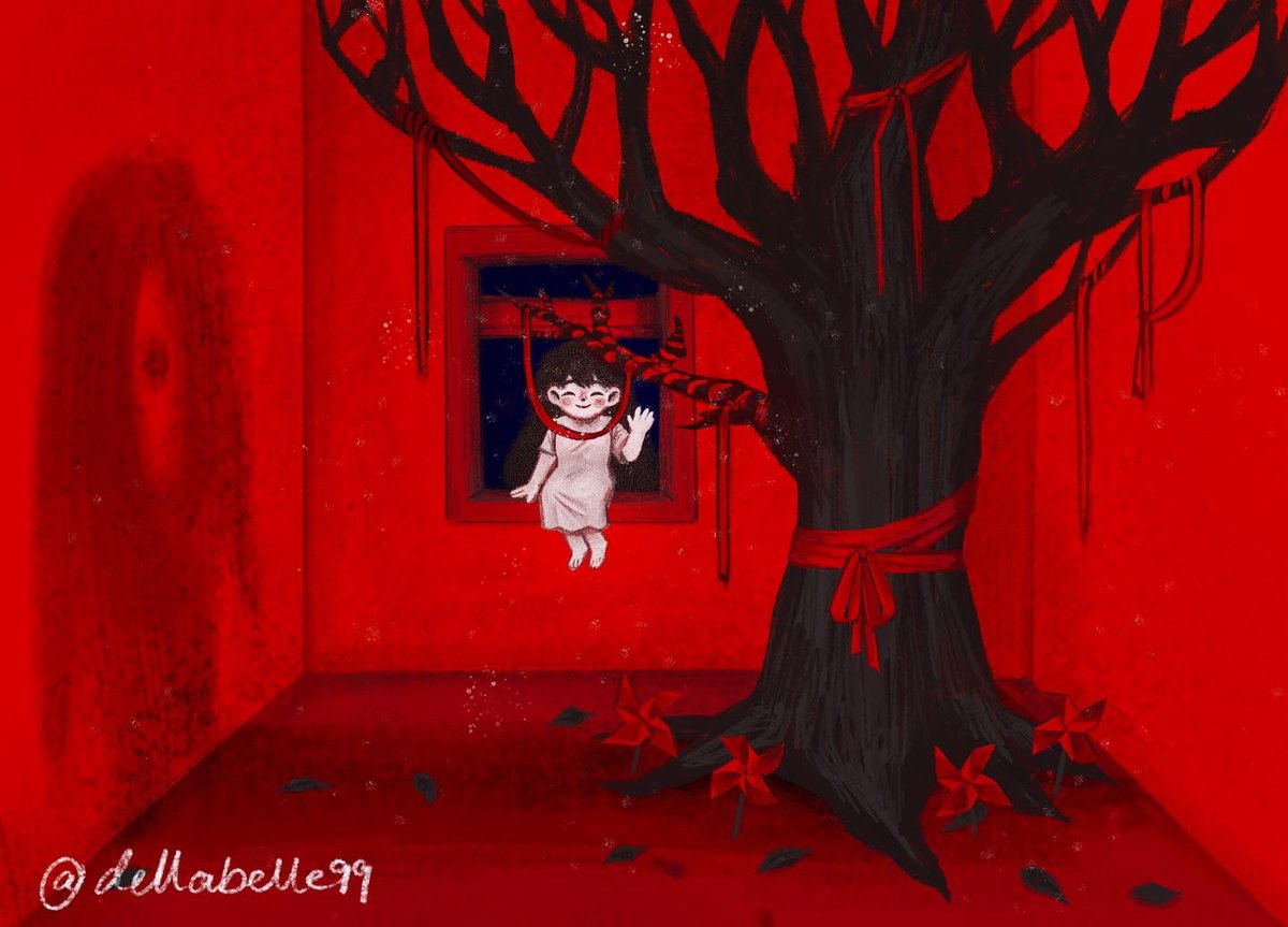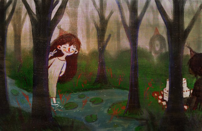 A fake picture book spread lolol had a lot of fun with the textures heree #omori #omorifanart