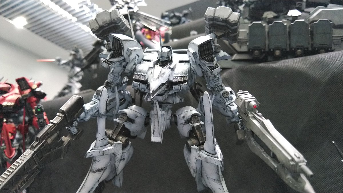 昨日の写真があまりにアレだったのでパシャパシャ。コトブキヤACVI、CRESTコアCRーC75U2、DELTA作りました。素組みです。ばらせるようにしてるので追って電飾するかなー #今月作ったプラモ晒そうぜ #アーマードコア #ArmoredCore