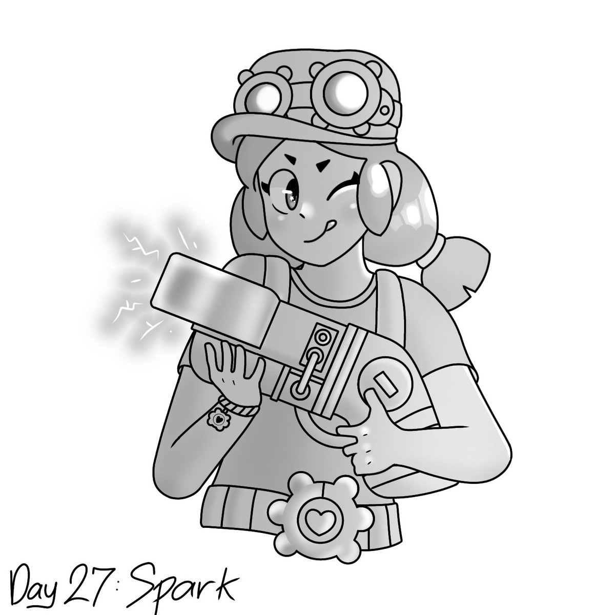 Day 16 random headcanon that her skull thing on her beanie is a useless compass #BrawlStars #BrawlStarsArt #inktober2021