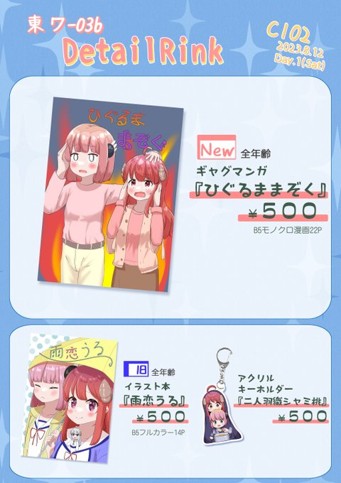 サークル「DetailRink」は、コミックマーケット102で「土曜日 東地区 “ワ” ブロック 03b」に配置されました! コミケWebカタログにてサークル情報ページ公開中です! webcatalog.circle.ms/Perma/Circle/1… #C102WebCatalog 当初予告通り4コマ日常系ギャグの まちカドまぞくやります。