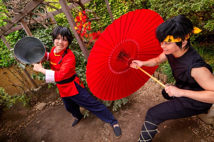 【コスプレ/ cosplay】 傘は武器で防具です💪 #見た人も無言で傘を構えた何かをあげる 乱馬♂: 梨人さん ( @nasito13 ) 良牙: 自分( @demonihokun ) 📸: きりゅーさん ( @kyamome32 )
