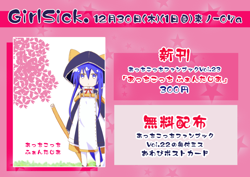 12月30日(木)(1日目)東ノー07a GirlSick. あっちこっちファンブックVol.23でます よろしくお願いいたします。