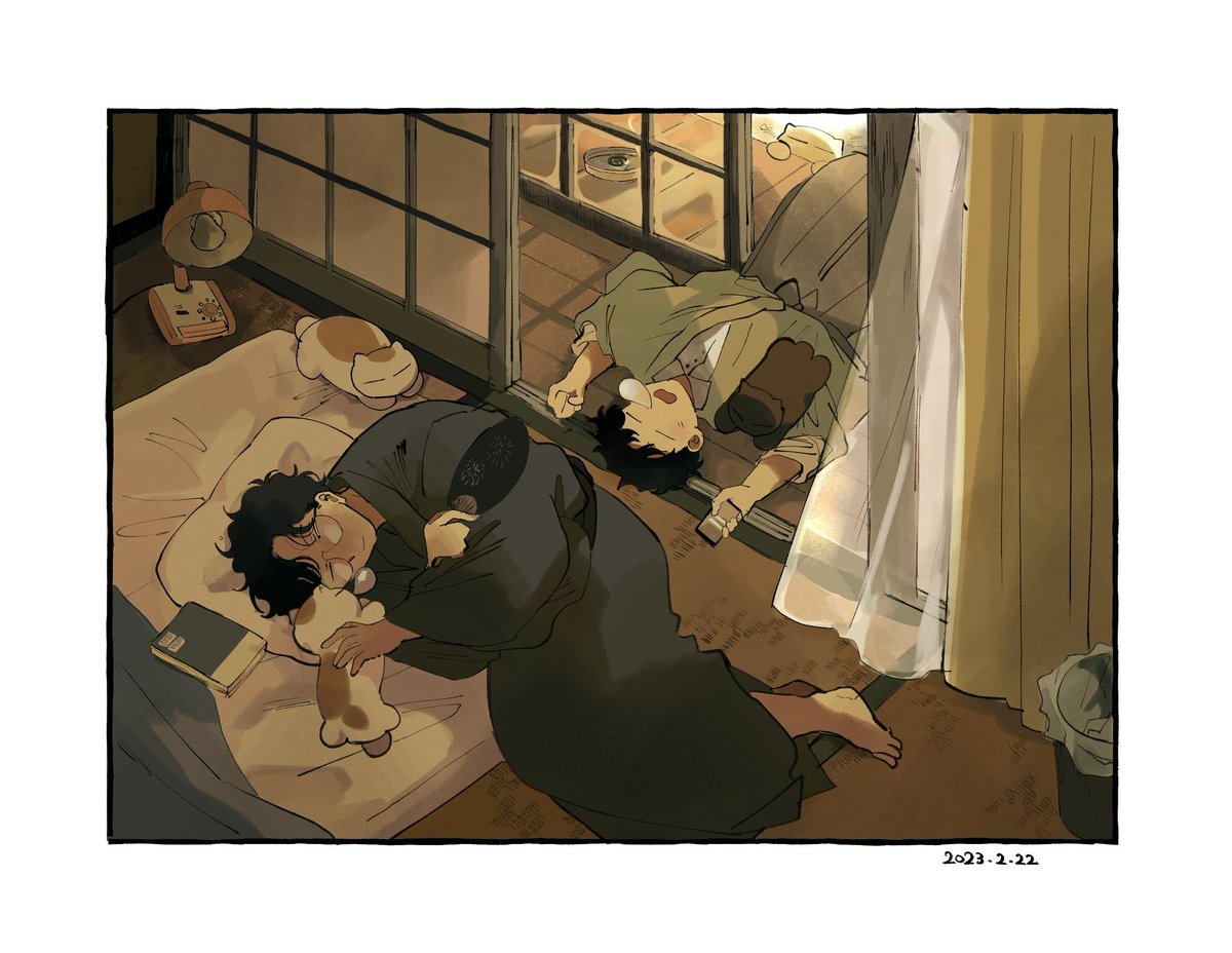 #自創作男子イラストフェス01 小説家先生と学生くんの日常を描いています✒️🐾