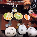 11 153 えっ、今日、あれだけ?って言われそうなので、女子ズ貼っておきます 今日はシーザーサラダが誕生した日でもあるそうなので、シーザーサラダをオツマミに🍷 #オモ写 #仕事猫 23/07/04 21:56