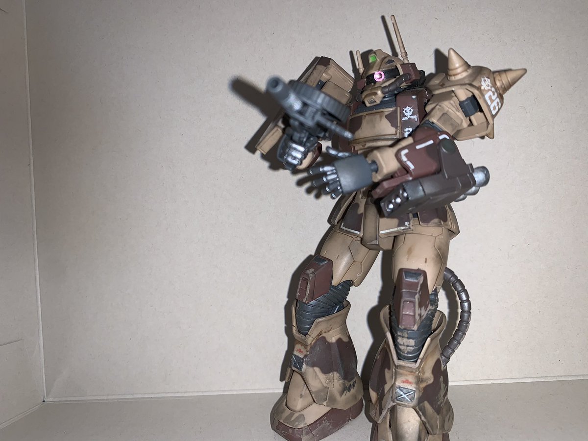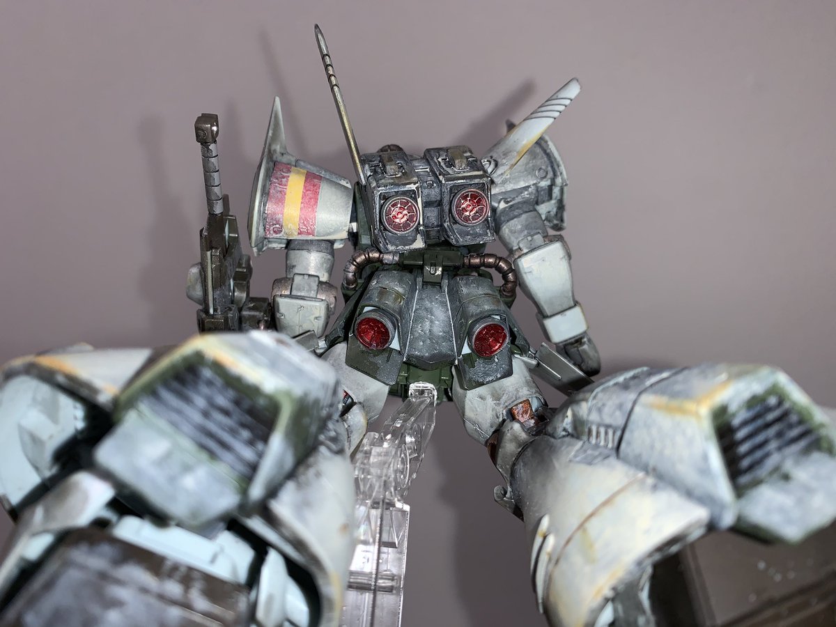 わ、ちょっと目を離した隙に反応貰えてるありがてぇ😭そんな訳で完成版貼ります!部分塗装と汚しだけでここまで映えてくれます(*⁰▿⁰*) #みんなの汚しやダメージ表現見せて #ガンプラ #ガンプラ好きと繋がりたい #ガンプラの画像を貼るとRTされると聞いて #ウェザリング