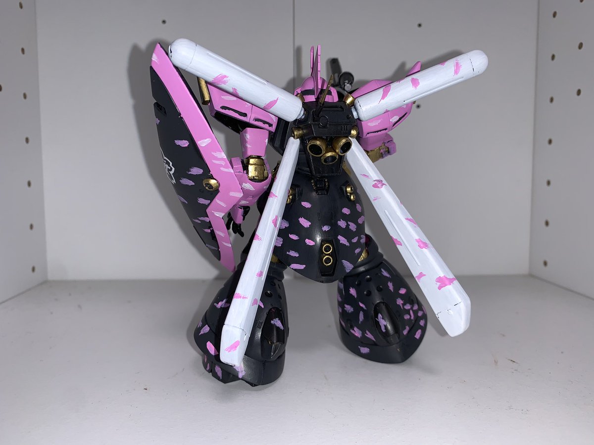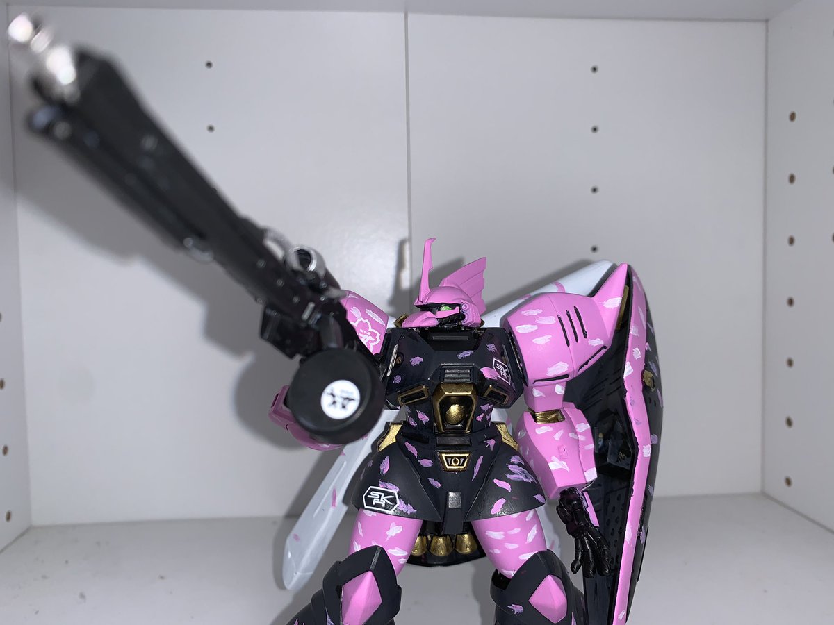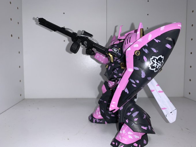 HGUC MS-14Fs ゲルググMシーマカスタム完成! 春ピンクに桜吹雪迷彩で仕上げてみた🌸 黒立ち上げでファレホ筆塗り全塗装、迷彩はフリーハンドですwゴールドはマッキーです。 #ガンプラの画像貼るとRTされると聞いて #ガンプラ好きな人と繋がりたい #ガンプラ #春ピンク