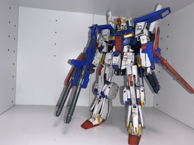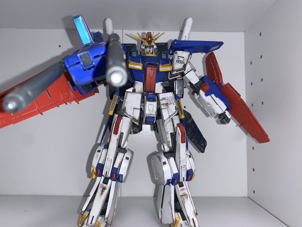 MG ZZGUNDAM Ver.Ka 完成ッ! 思った以上に肩の可動域が狭くてやりたいポージング出来ないのが残念、、、、 シルバーのマッキーが良い仕事してくれましたね。 #ガンプラ #ガンプラの画像貼るとRTされると聞いて #ウェザリング