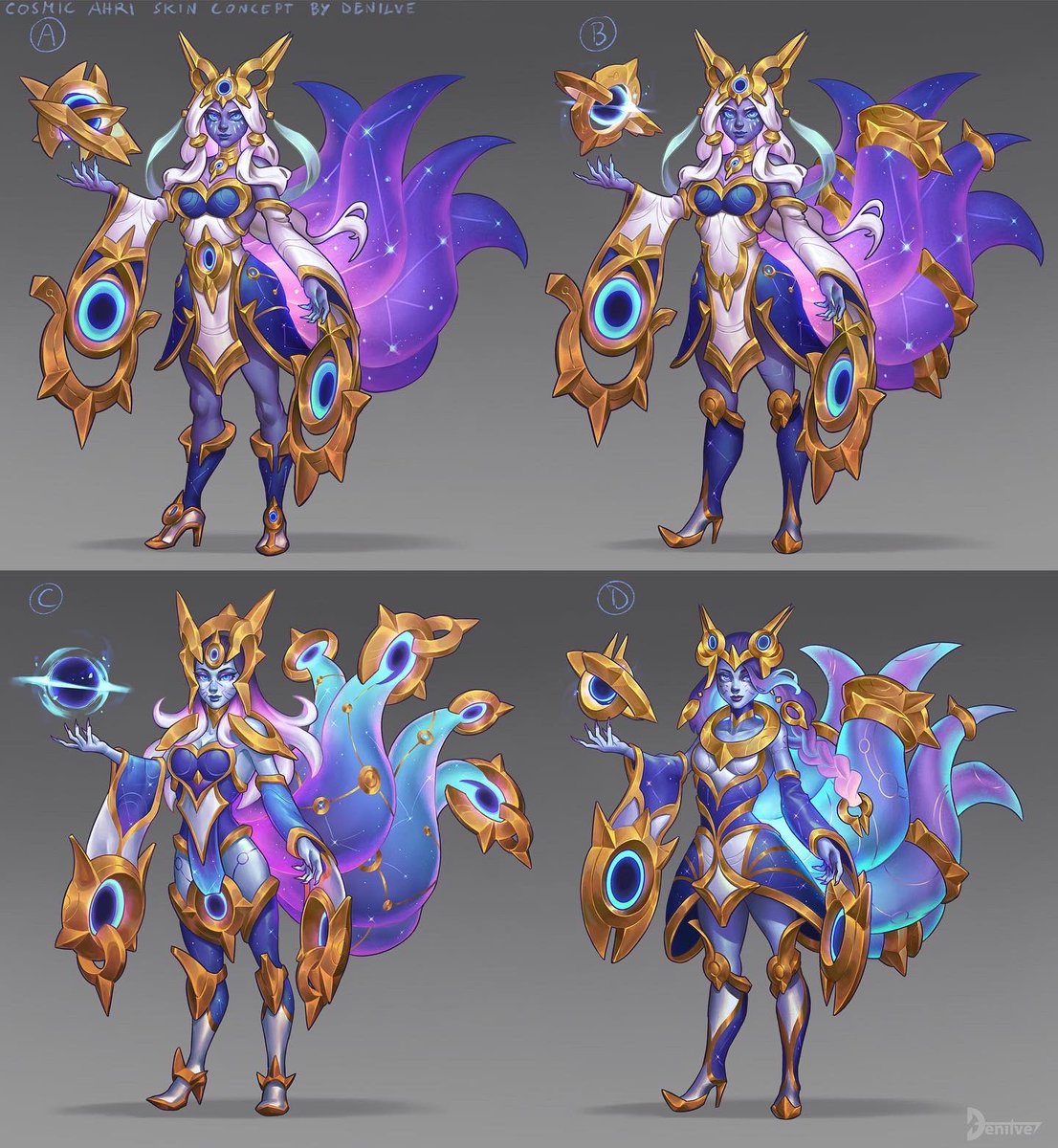 Cosmic Ahri skin concept ✨tell me which one do you prefer! #LeagueOfLegends #LeagueOfLegendsFanArt #Ahri #characterdesign #riotgames
