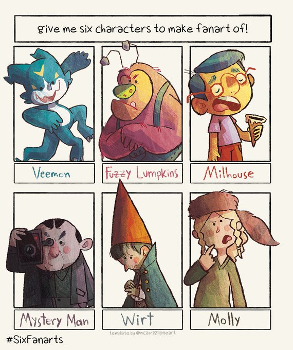 All done! Thank you all for the wonderful suggestions! I had an absolute blast doing these. Gonna post the separate pieces later. #sixfanarts #SixFanartsChallenge #digimon #powerpuffgirls #thesimpsons #losthighway #overthegardenwall #lumberjanes