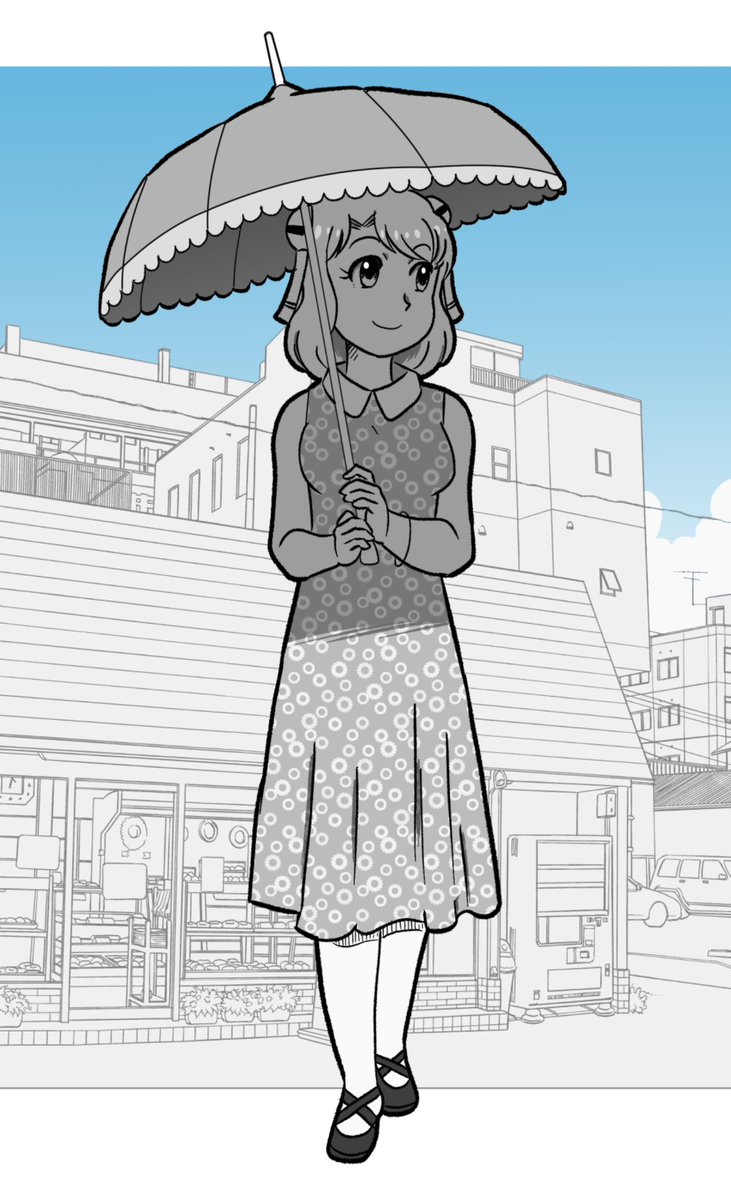 今朝の一枚。 日傘を差すミノリさん。 今日も暑いです。皆さんご安全に。