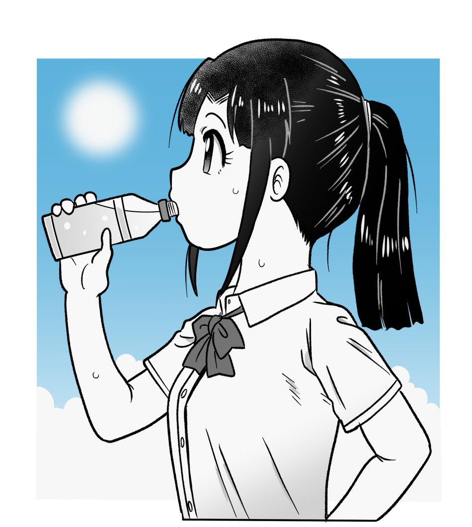 25 78 今朝の一枚。ペットボトルとポニーテール。 水分補給を忘れずに! 23/07/21 08:35
