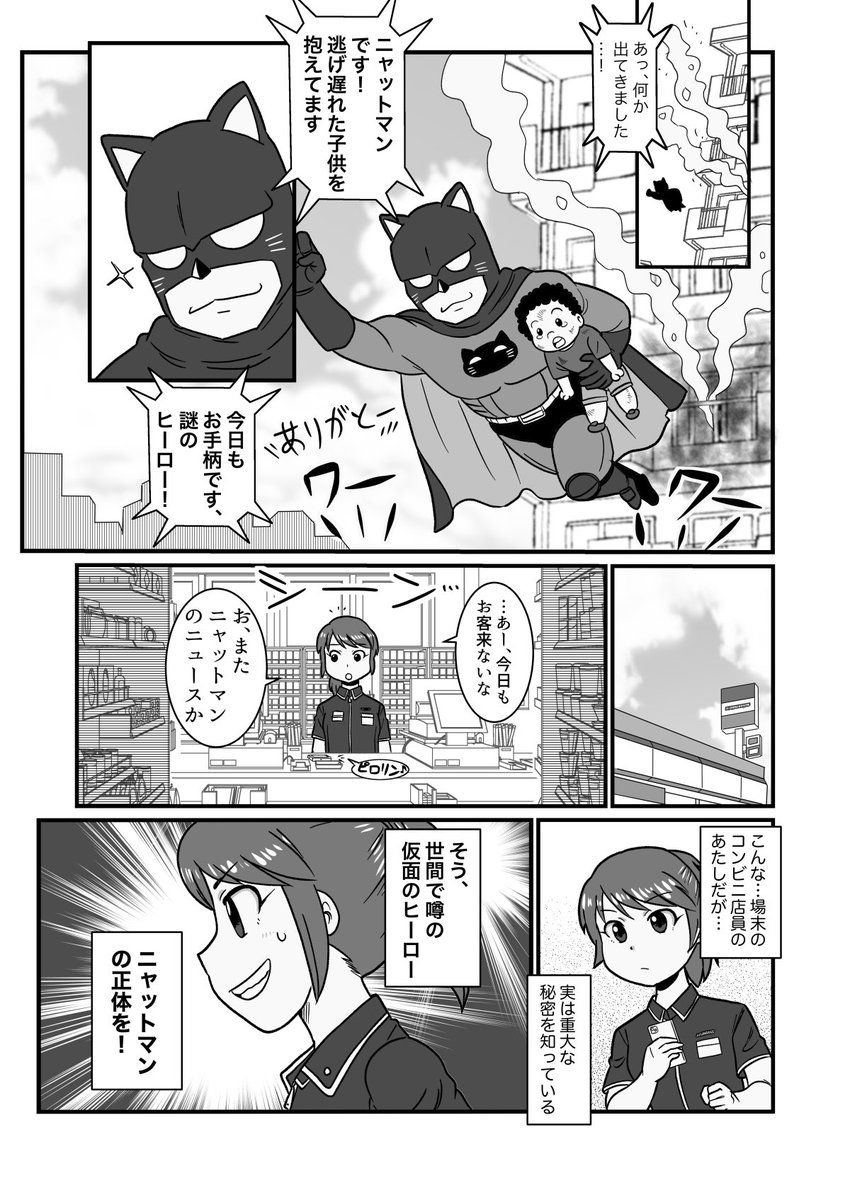 仮面のヒーローの秘密を知るコンビニ店員の話(1/2) #漫画が読めるハッシュタグ #創作漫画