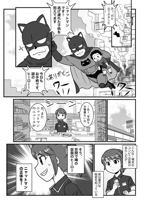 70 166 仮面のヒーローの秘密を知るコンビニ店員の話(1/2) #漫画が読めるハッシュタグ #創作漫画 23/08/12 18:28