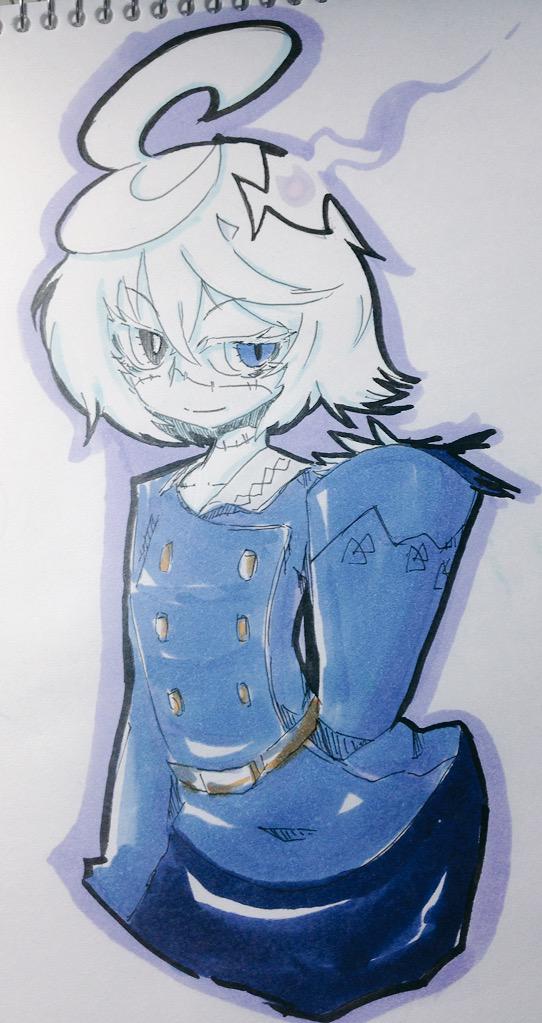 @Mafy_snow 描かせていただきました、だいぶキャラデザと雰囲気が変わってしまいました、、失礼しました(´-`).