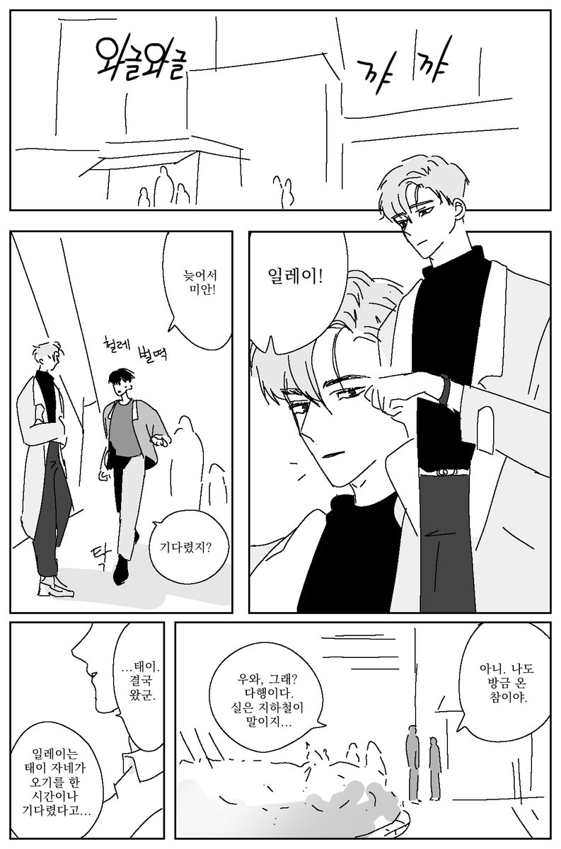 26 32 After the Run 태의가 도망친 다음 날 *태이런 기념으로 그린 만화입니다. 즐감해주세요! 23/07/26 22:47
