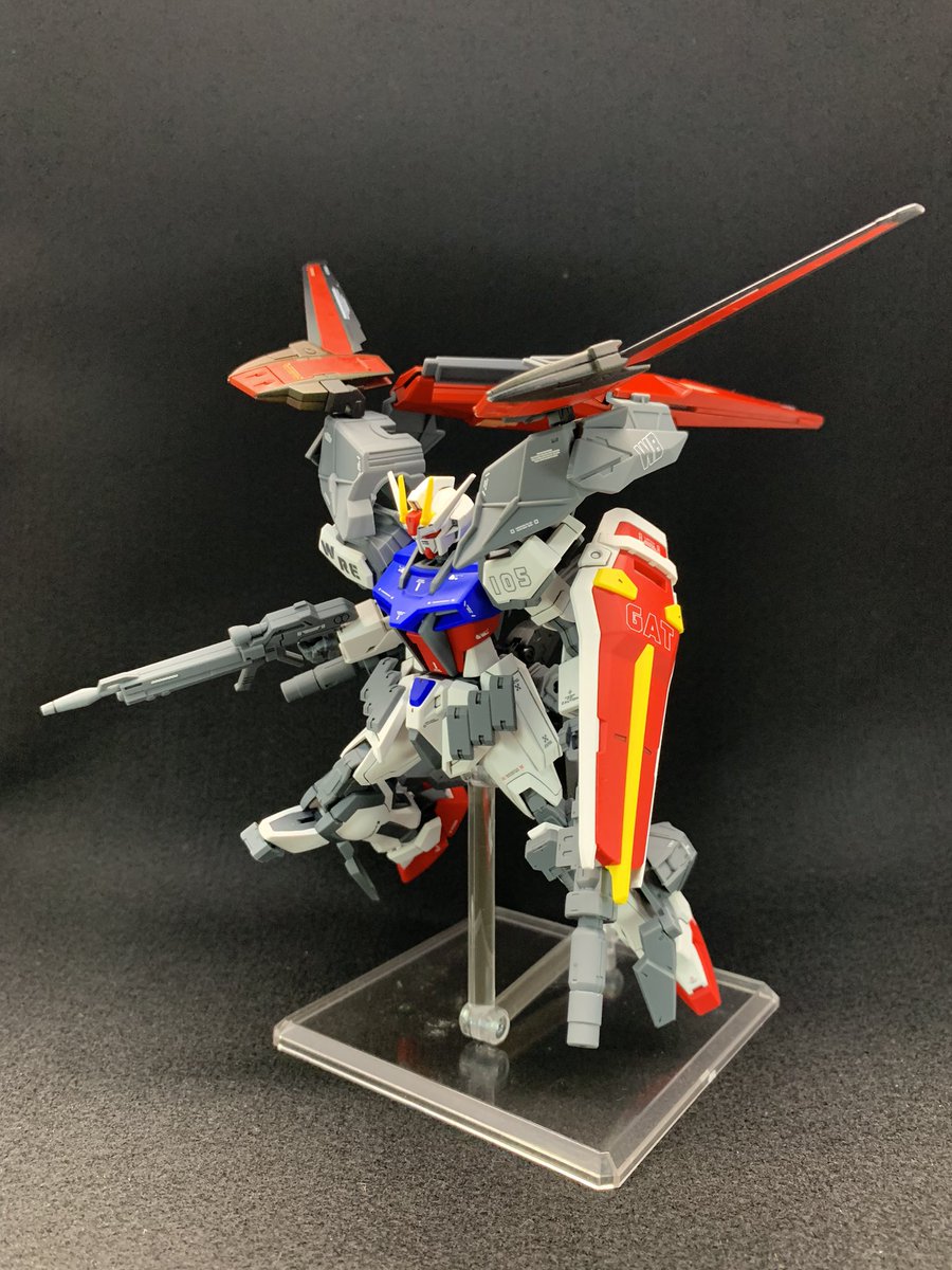 ストライク完成しました! ダブルリベイクライフルを装備した、高機動仕様のストライカーパックをイメージして作りました! #ガンプラ好きな人と繋がりたい #ガンプラはどんな自由な発想で作ってもいいんだ #ガンプラの画像貼るとRTされると聞いて