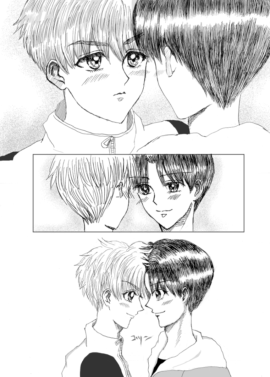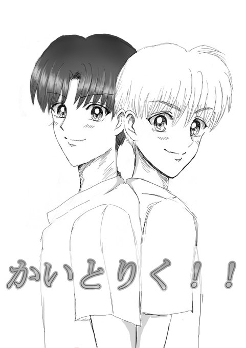フォロワー300名様を記念して、ただ今執筆中の漫画【かいとりく!!】の海斗と理矩(りく)を描きました☆名前合わせただけの至極簡単なタイトルェ… BL漫画です◎ #イラスト好きな人と繋がりたい #漫画家と繋がりたい