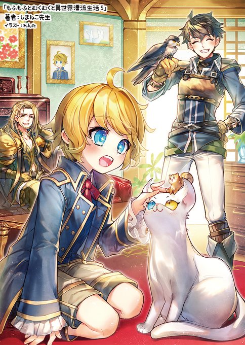 【告知】本日8/18発売! 「もふもふとむくむくと異世界漂流生活 5」 著:しまねこ先生 (@shimanekomfmf) es-novel.jp/bookdetail/145… amazon.co.jp/dp/480301826X 引き続いてイラスト担当させて頂いております!5巻の表紙はケンは少し後ろに下がって、金髪少年が目印です!是非お楽しみくださいー!