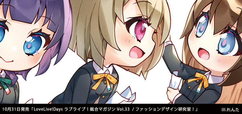 【告知】 10月31日発売のLoveLive!Days ラブライブ!総合マガジン Vol.33の「ファッションデザイン研究室!」にてミニイラスト描かせて頂きました。 グッズ投票結果が発表されました!そしてみんなでデザインを考えていく事に… 詳しくは本誌でどうぞ! gs.dengeki.com/lovelive-magaz…
