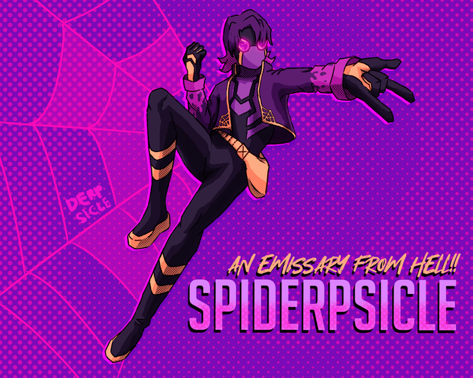 SPIDERPSICLE REAL !! with the great power to inexplicably avoid dire consequences, this amateur spider swings on webs as tough as silver, out of sight of the spider society. his catchphrase?: when in doubt, double down >:)) #spiderverse#spidersona#digitalart