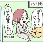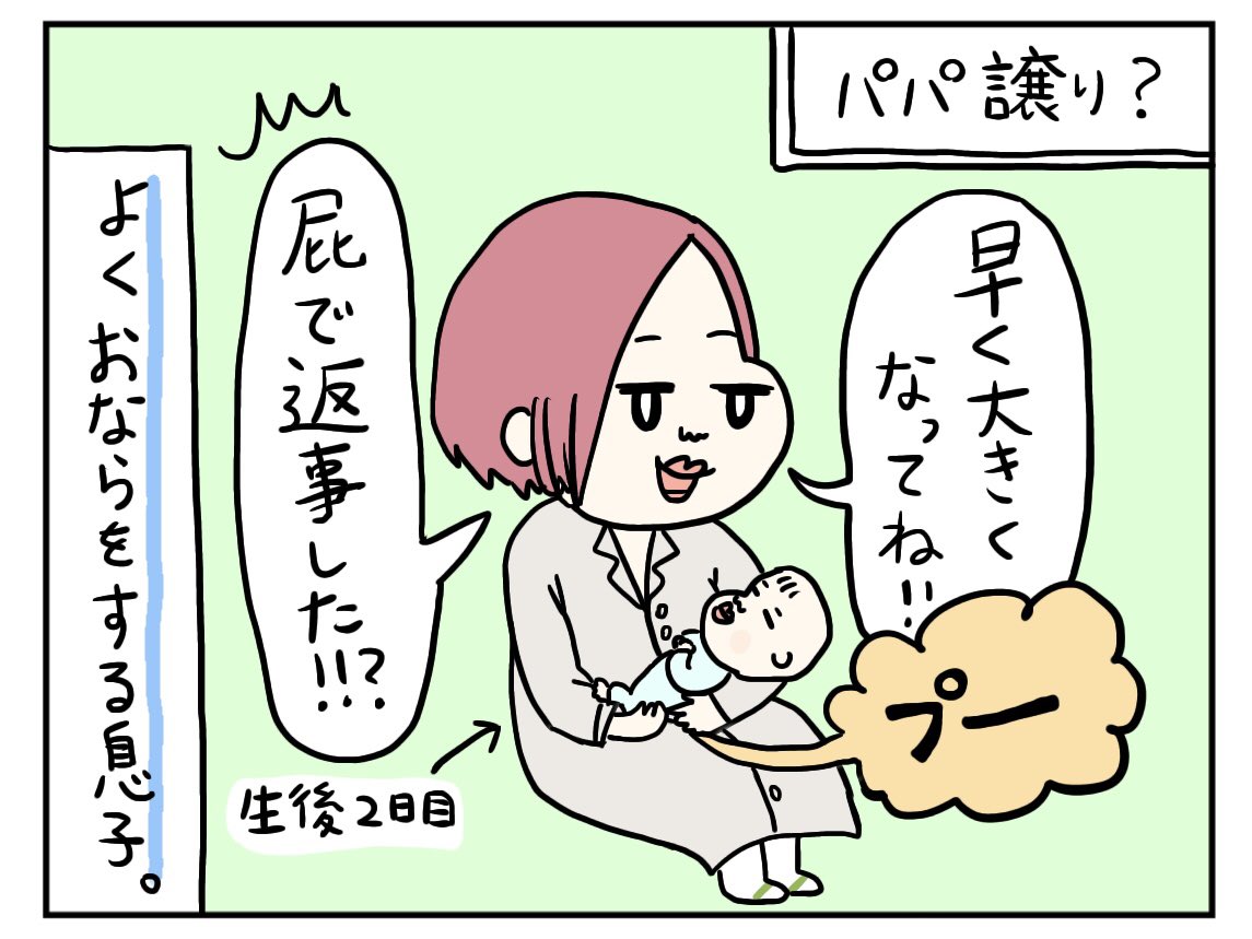 2 26 今週の漫画「パパ譲り?」 息子の屁にびっくりして飛び上がる師匠でした👶🏻 来週は、出産直後の大変だったことなどを描いていきます!🤱🏻 #師弟夫婦 #エッセイ漫画 #コミックエッセイ #育児漫画 22/09/10 10:10