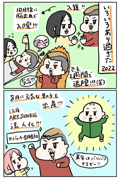 1 4 今週の漫画です👶🏻 ARTJUNKIE法人化について🙌 #師弟夫婦 #育児漫画 #育児絵日記 22/12/24 11:35