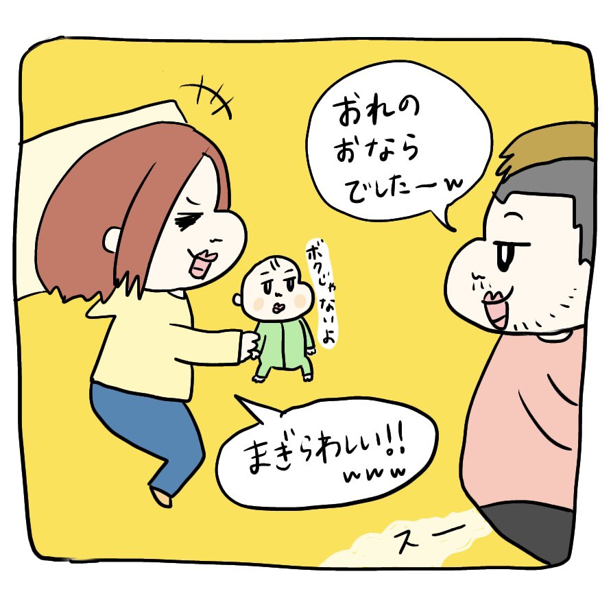 今週の漫画「パパ譲り?」 息子の屁にびっくりして飛び上がる師匠でした👶🏻 来週は、出産直後の大変だったことなどを描いていきます!🤱🏻 #師弟夫婦 #エッセイ漫画 #コミックエッセイ #育児漫画