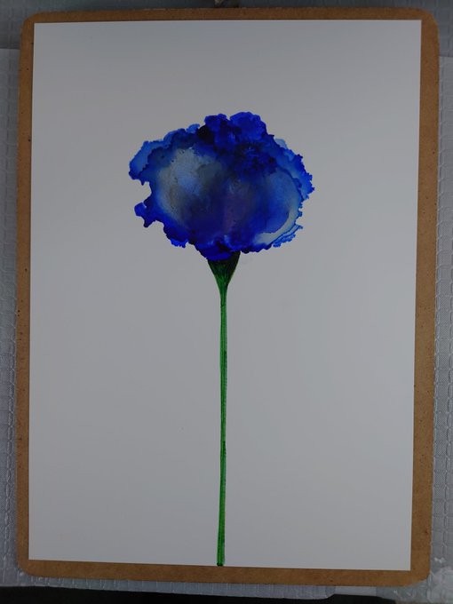 0 1 青いカーネーション。インクを操るのが難しい。 #アルコールインクアート #コピック 22/05/13 11:50