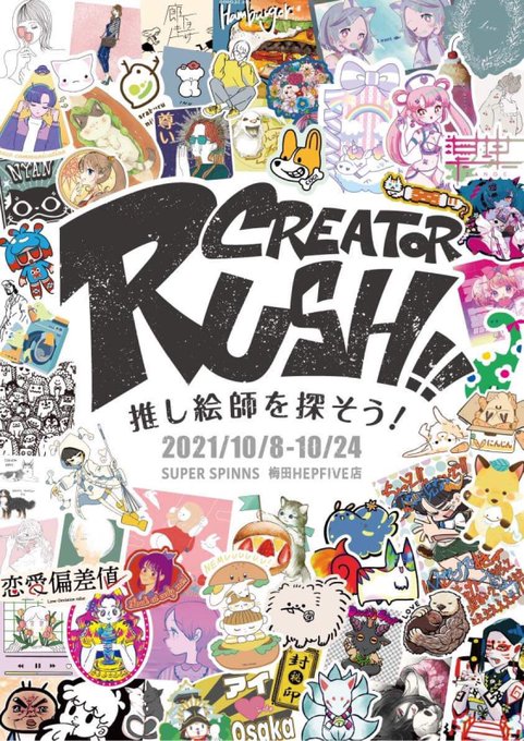 【再告知】 @kazuto_nakai_ さんとクリエイターイベント企画を今回もやる事になりました!!!! 「SPINNS CREATOR RUSH!!」 60名のクリエイターが参加!! ロゴ及びポスターデザインは @yukimiyuki_wave さん 開催日も10/8〜10/24となりました! #CREATOR_RUSH #SPINNS_CREATOR_RUSH