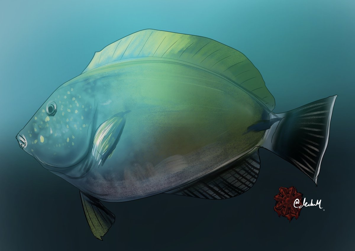 #魚類版深夜の真剣お絵描き60分一本勝負 文様くっそ雑で申し訳ないがムシクイアイゴ…