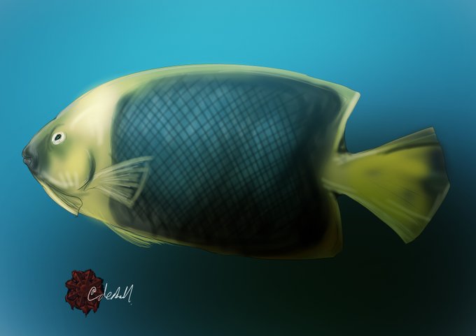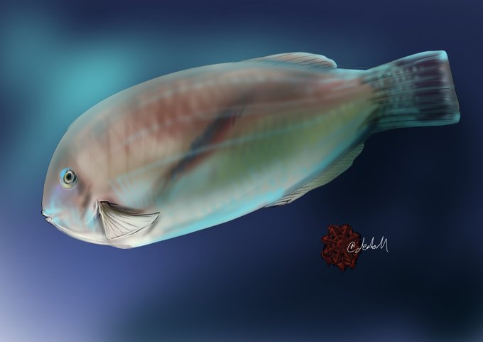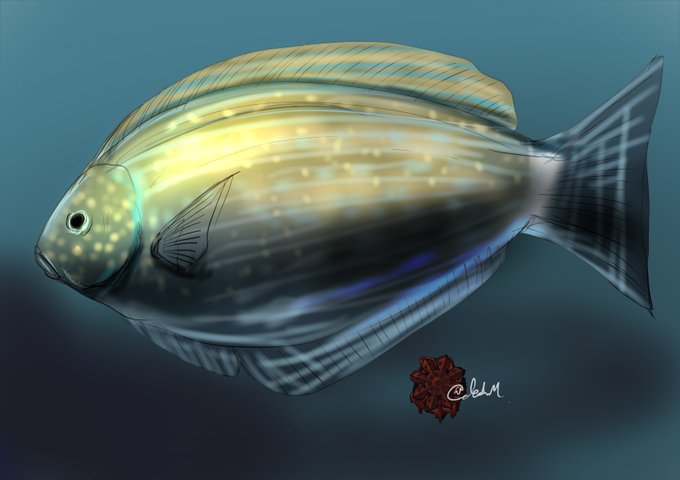 0 1 #魚類版深夜の真剣お絵描き60分一本勝負 文様くっそ雑で申し訳ないがムシクイアイゴ… 23/06/05 00:01