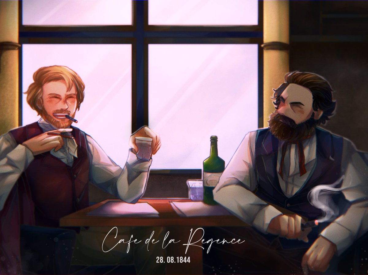 Day 23, Hot Drink! Mr. Engels... it's still hot, please be careful 🥺👉👈 #otptober #inktoberalternative #inktober2020 #inktober2020day23 #KarlMarx #friedrichengels