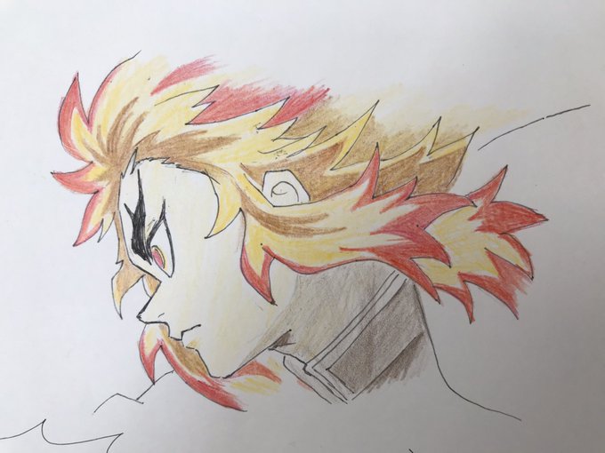 この角度から見た煉獄さんがいい!久しぶりに描いたら楽しかったー。 #煉獄杏寿郎イラスト #煉獄杏寿郎模写 #鬼滅の刃イラスト #鬼滅の刃模写 #ファンアート #鬼滅の刃好きさんと繋がりたい #色鉛筆イラスト #アナログイラスト