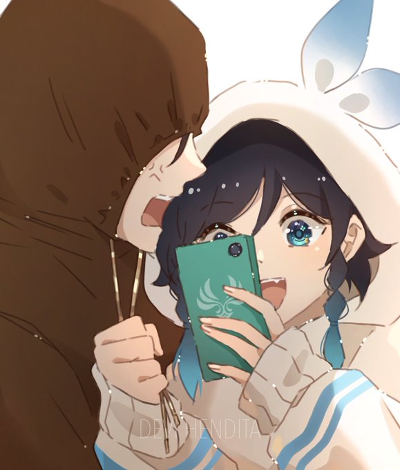 Hey Morax, let's take a photo, ehe! just found a cute pose base on Pinterest and really matched with them~ #venti #Zhongli #GenshinImpact #genshinimpactfanart