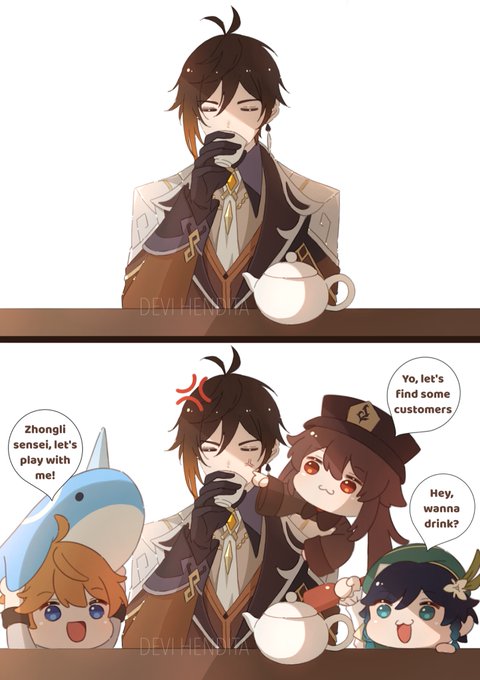 Zhongli's peaceful day🍵 #GenshinImpact #genshinimpactfanart #zhongli #tartaglia #HuTao #venti