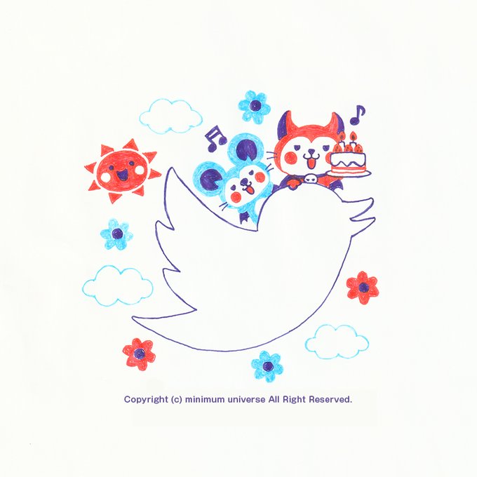 今日は「ツイッター誕生日」に便乗するデビ♪🎂 ツイッターさま お誕生日 おめでとうございますデビ♪(*´▽`*)🎉 #今日は何の日 #3月21日 #動物 #イラスト #キャラクター #ボールペン #サラサクリップ