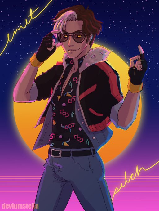 80's inspired Emet-Selch 'cause why not (and I've been listening to a bunch of synthwave...) #ffxiv #emetselch #shadowbringers