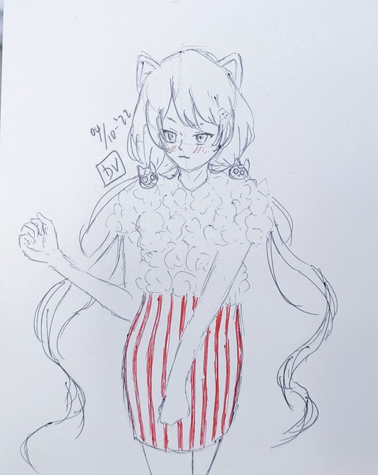 fourth entry of #NIJITOBER22 ft. inui sama in a popcorn outfit, to contrast her usual japanese outfit #いぬいらすと