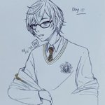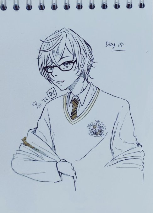 today's entry of #NIJITOBER22 with nagimama as hufflepuff coz i thought putting him in ravenclaw was too obvious, my intention was to color some parts of the uniform gold but midway my goldpen ran out so :/ #四季彩画